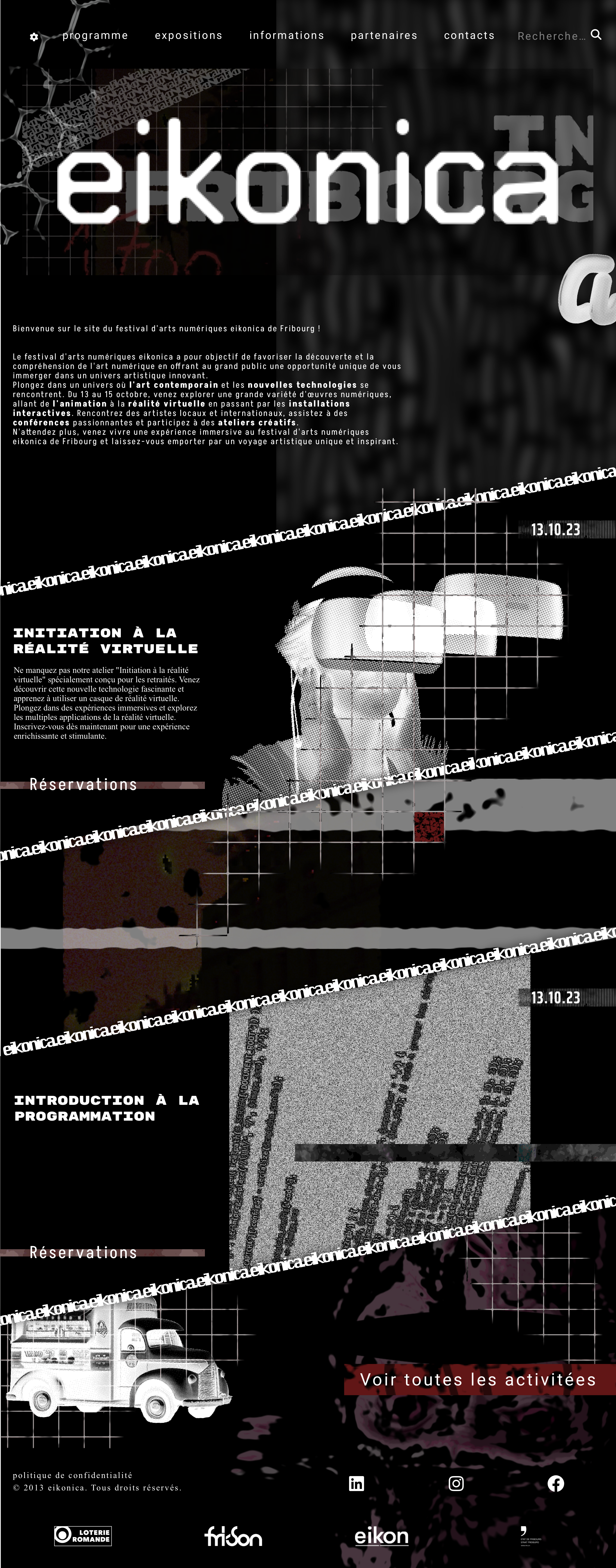 Pour le festival fictif Eikonica, j'ai créé une identité graphique, une vidéo trailer, et un site web dans le cadre de mon travail de pratique professionnelle en deuxième année. Inspiré par l'anti design et la saturation, ce projet m'a permis de sortir des limites traditionnelles du design visuel.